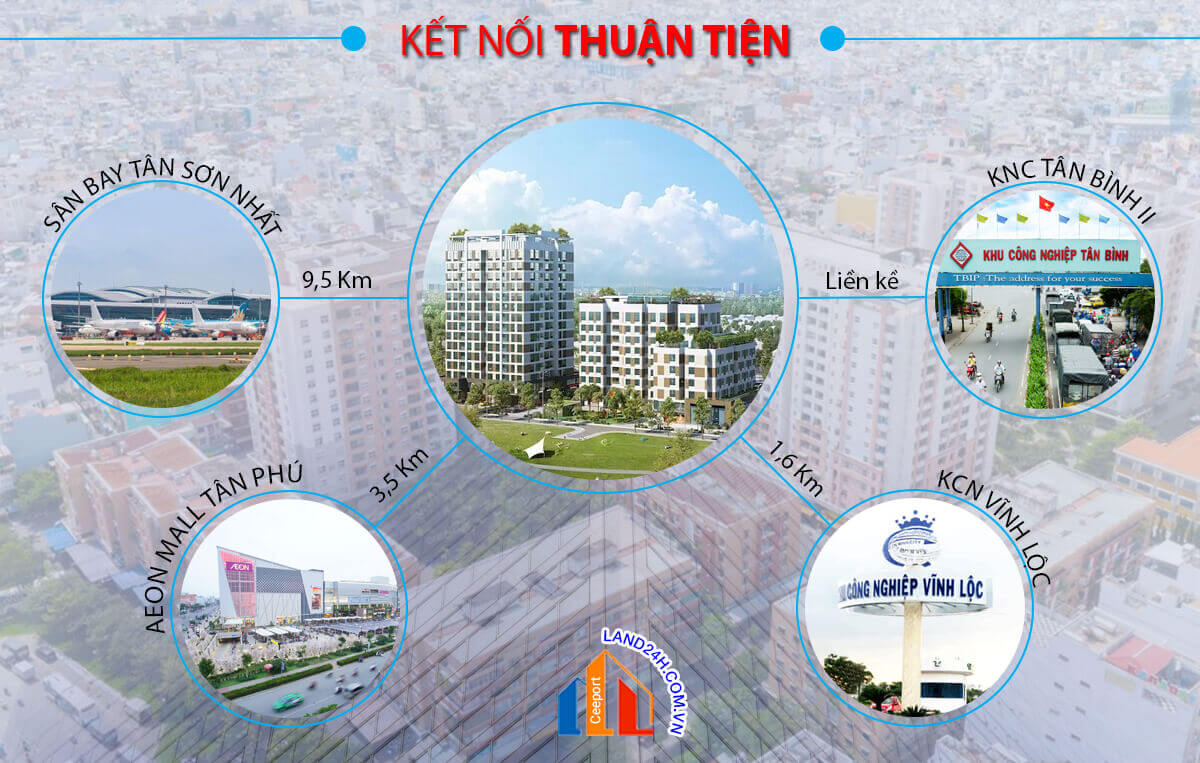 Từ đây cư dân nhà ở xã hội Tanimex KCN Tân Bình dễ dàng kết nối đến các tiện ích trong khu vực cũng như đi vào trung tâm thành phố thông qua các tuyến giao thông huyết mạch: Quốc lộ 1A, Lê Trọng Tấn, Trường Chinh, Cộng Hòa…