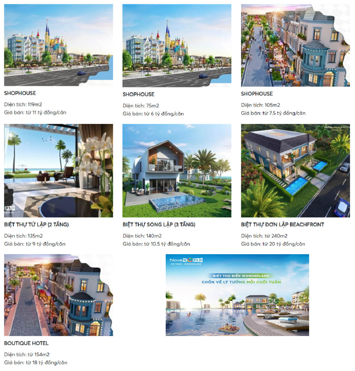 LOẠI HÌNH SẢN PHẨM: Biệt thự tứ lập, biệt thự song lập, biệt thự đơn lập, Shophouse, Shoptel.