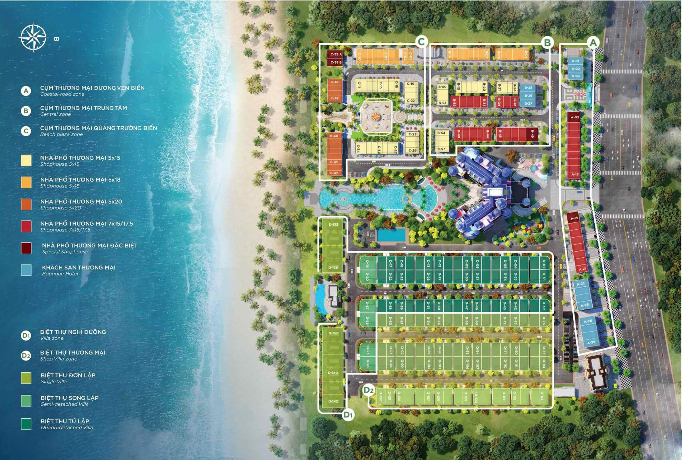 Khu Biệt thự nghỉ dưỡng ven biển (Second home): cung cấp đa dạng mẫu biệt thự đơn lập – song lập và tứ lập đáp ứng nhu cầu nghỉ dưỡng cũng như đầu tư của mọi khách hàng cũng như nhà đầu tư.