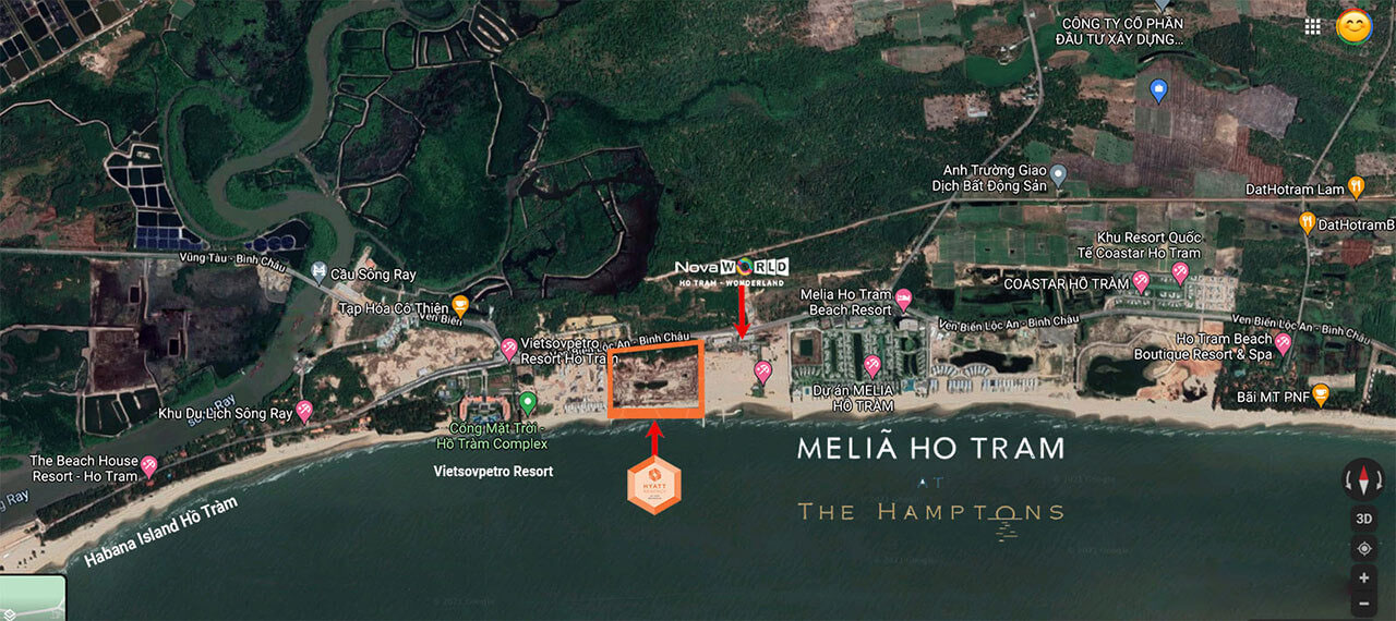 Wonderland Hồ Tràm nằm giữa Hyatt Regency và Melia